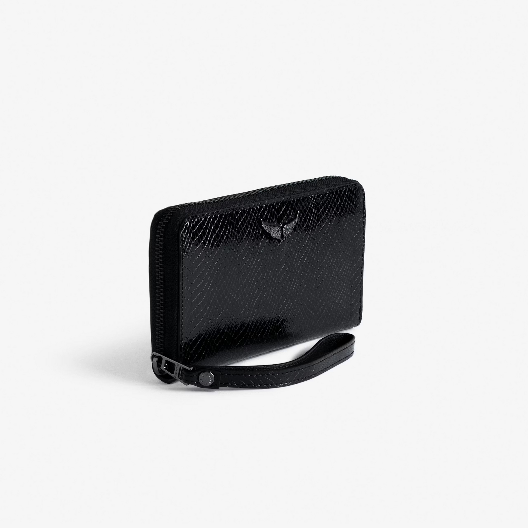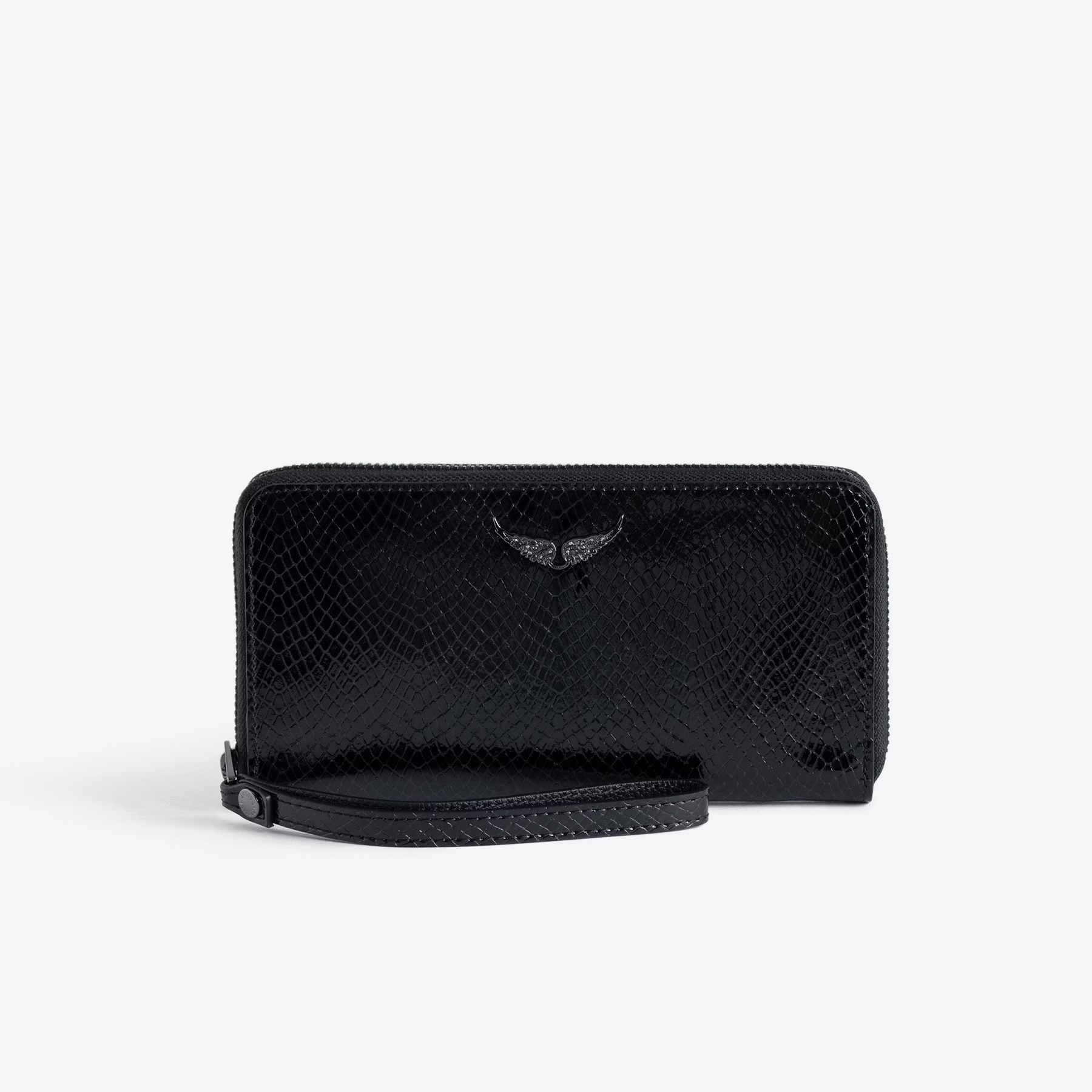 - Women’s black python-effect patent leather wallet