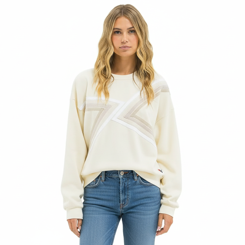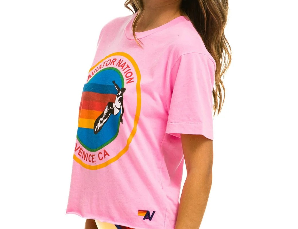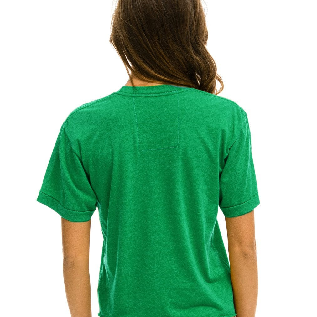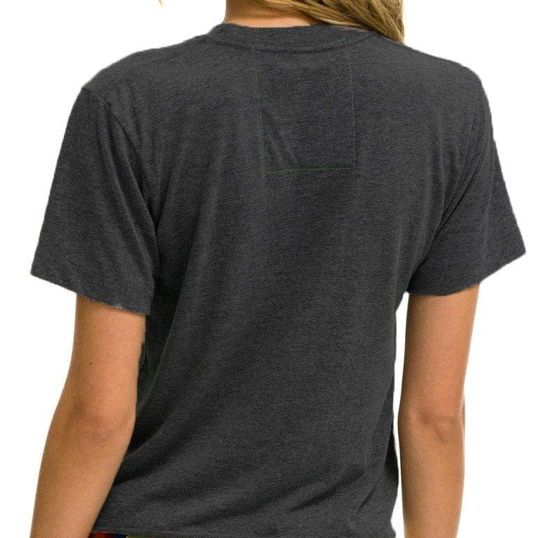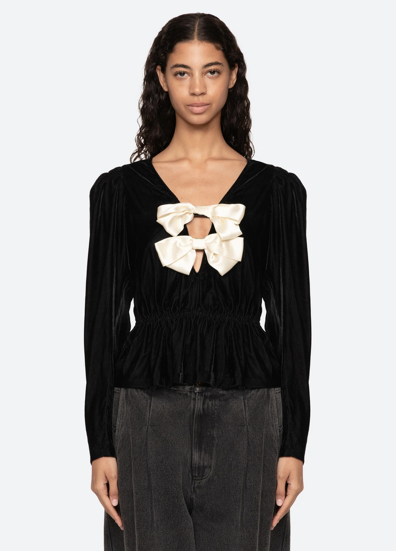 This shirt has a slightly oversized fit, with a crop that sits at the belt line, and is completed with antique white buttons and a single chest pocket.