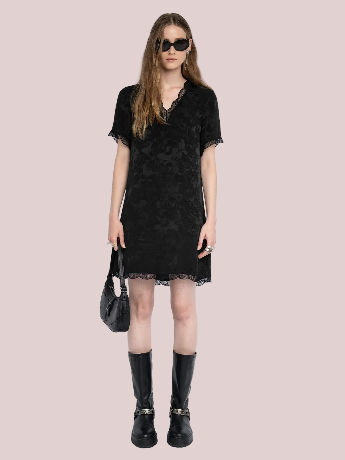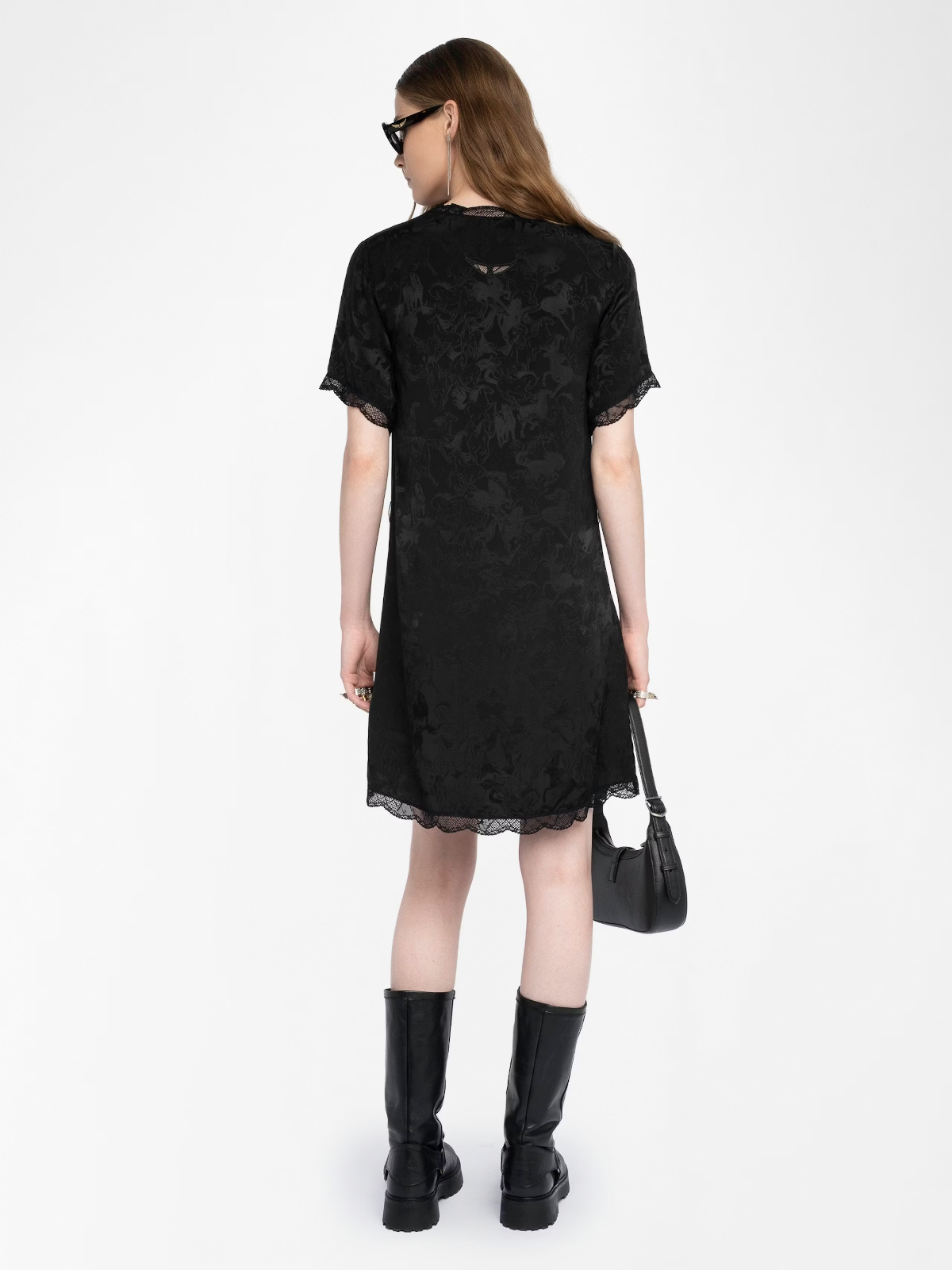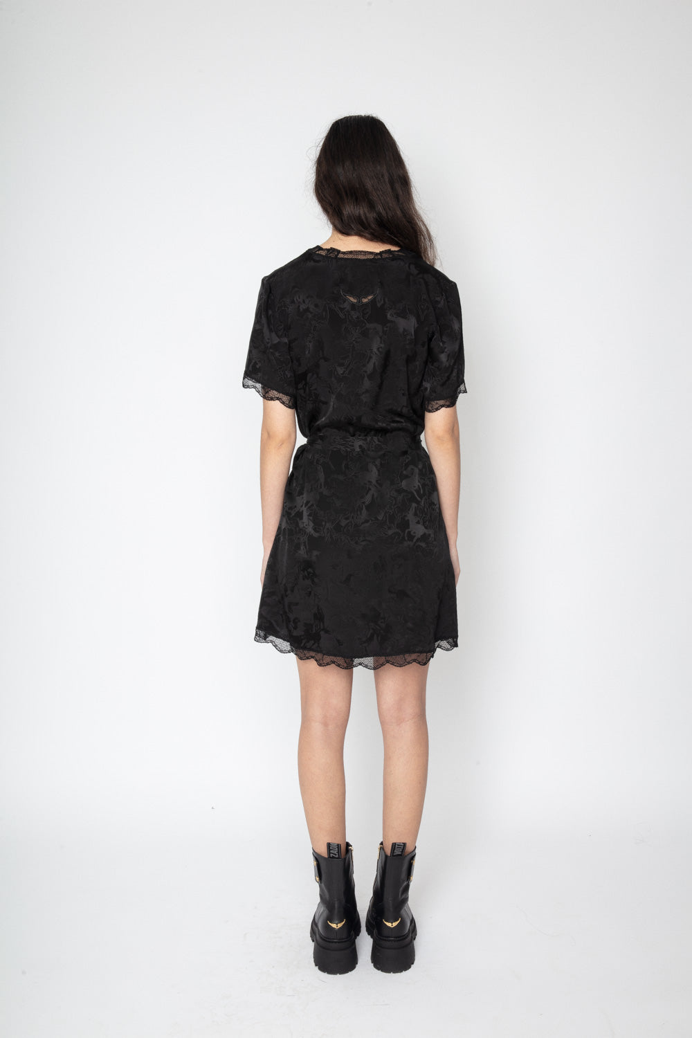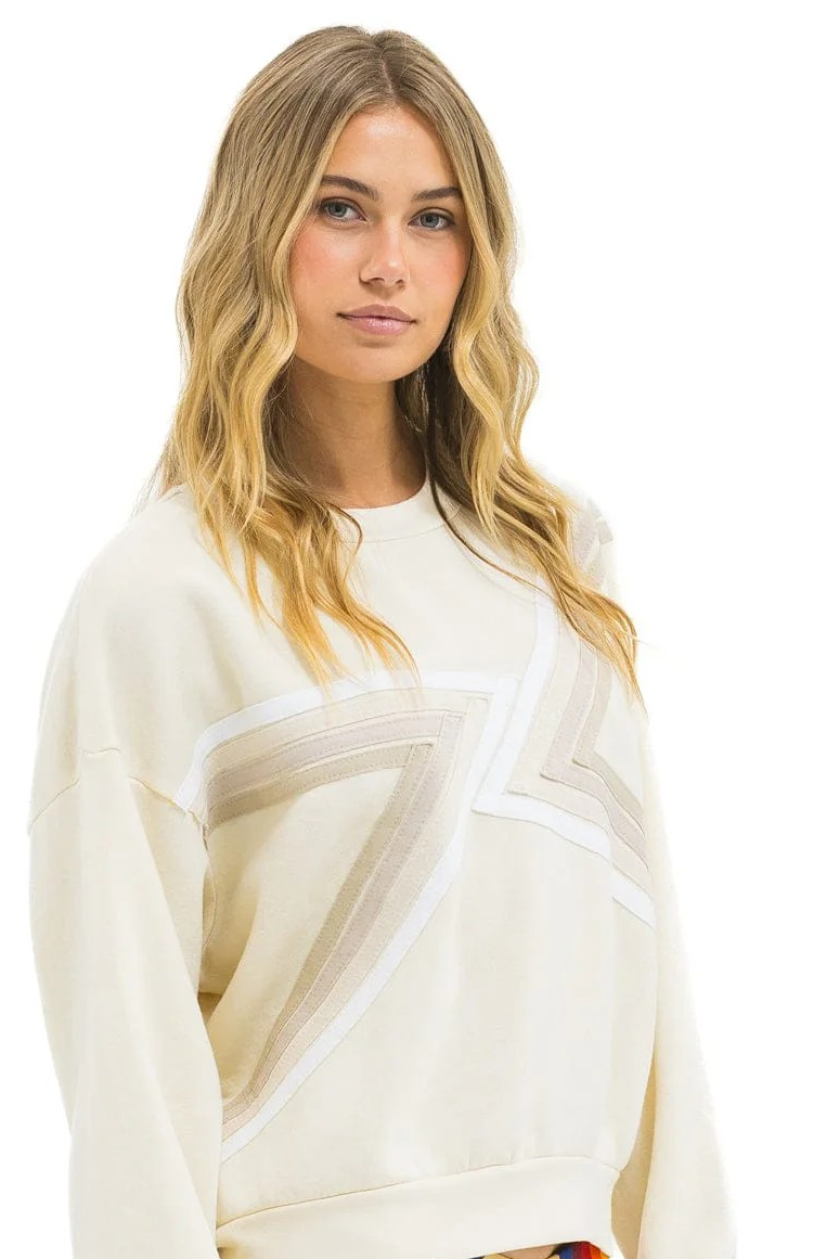 This shirt has a slightly oversized fit, with a crop that sits at the belt line, and is completed with antique white buttons and a single chest pocket.