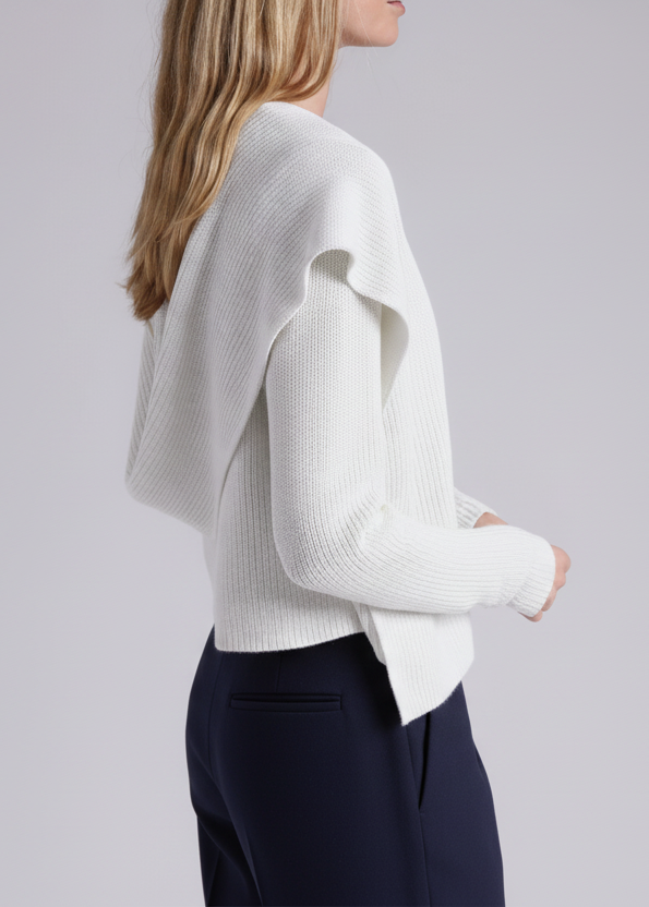 Roll-neck collar, and fully fashioned sleeves—meaning no seams, just one clean tube—plus hand-linked, hand-finished construction.