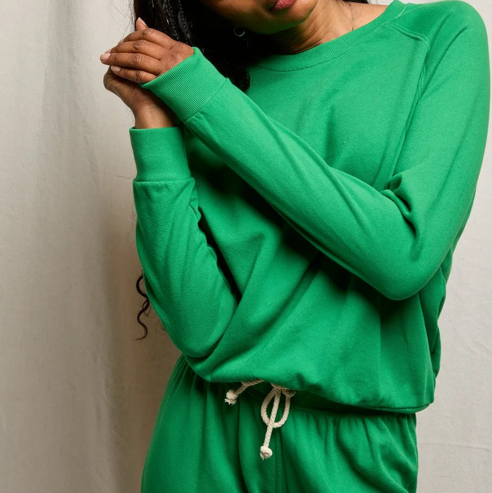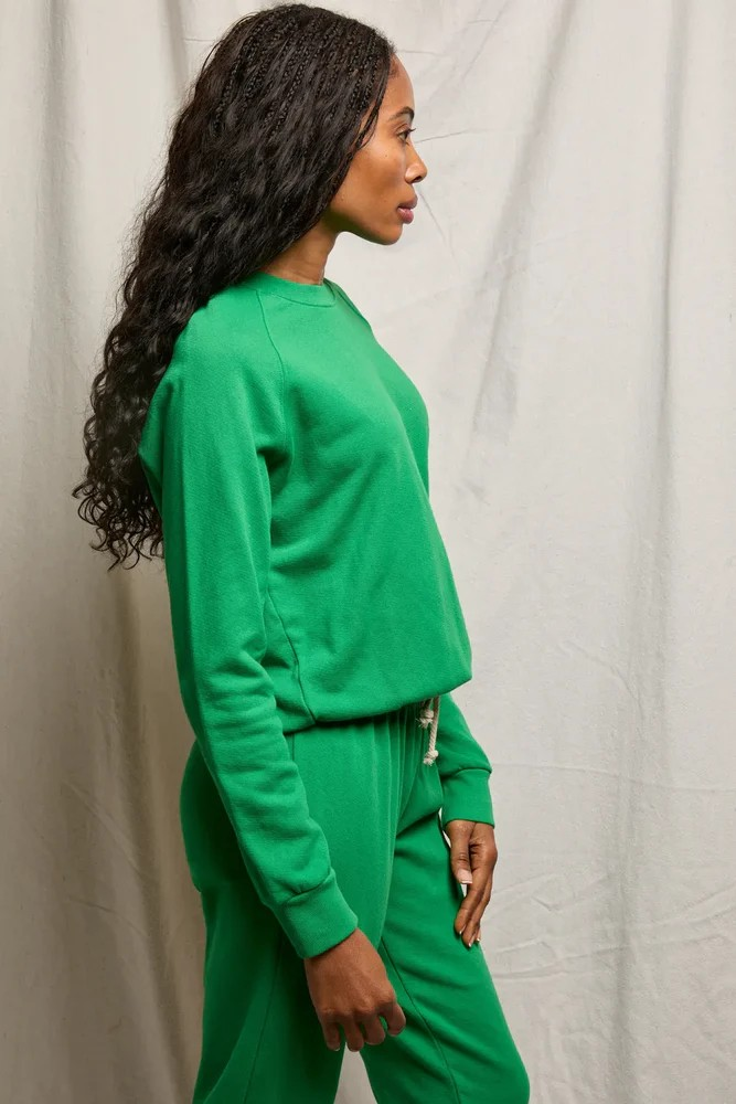 Designed in french terry for a refined feel, featuring an easy raglan sleeve and fit that adds subtle shape and comfort. perfect for lounging or layering, this sweatshirt is made to be lived in.
