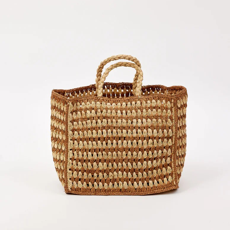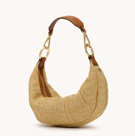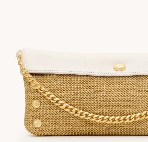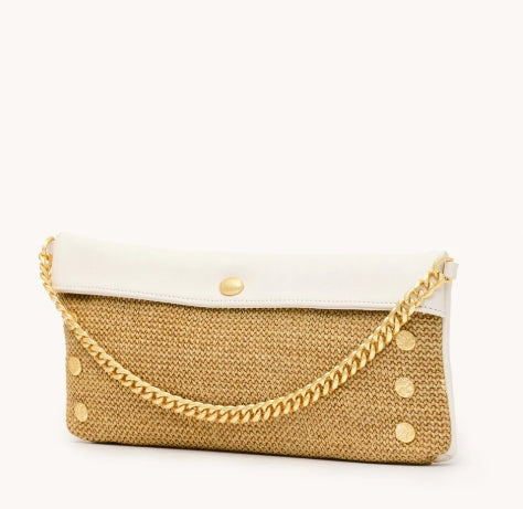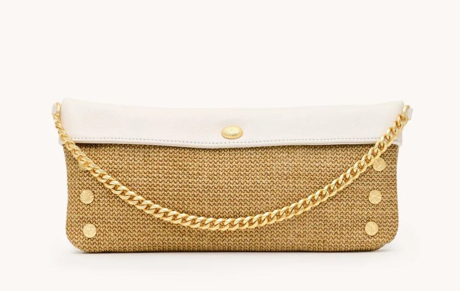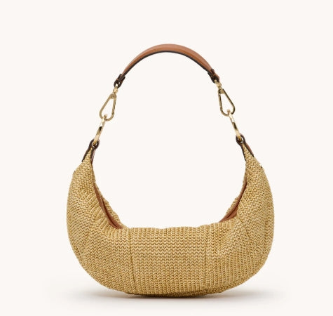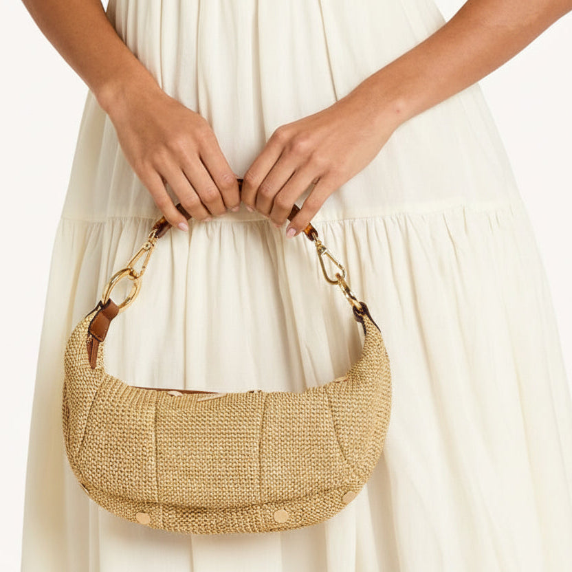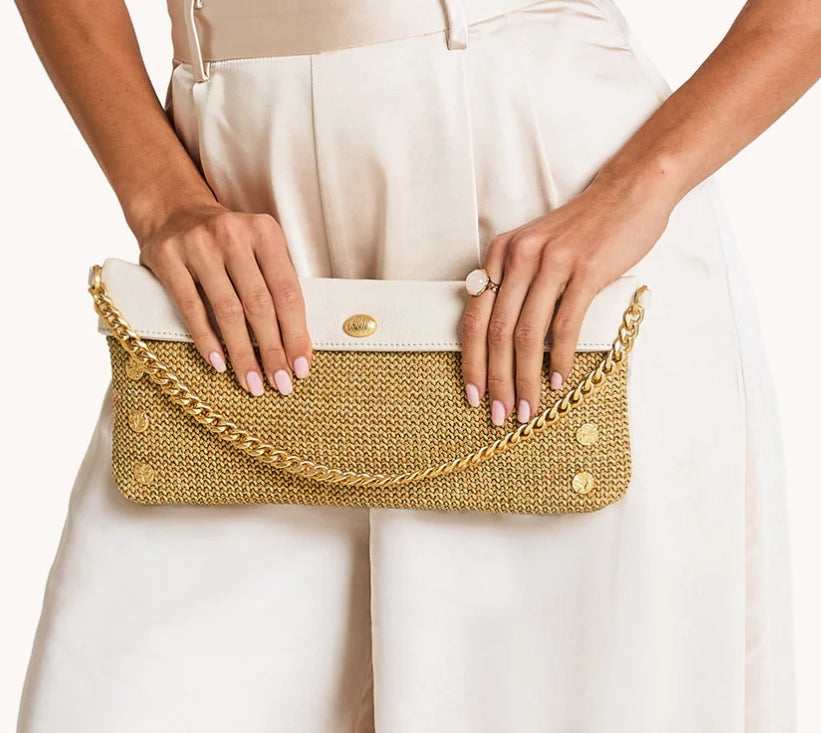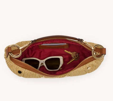 Spray with protectant before your first outing. Avoid contact with dark washes, denim dye, and sharp objects. Store in a dust bag for safekeeping. Please note, our raffia collections feature both leather and Spanish raffia. Apply designated cleaners to leather sparingly and according to instruction.